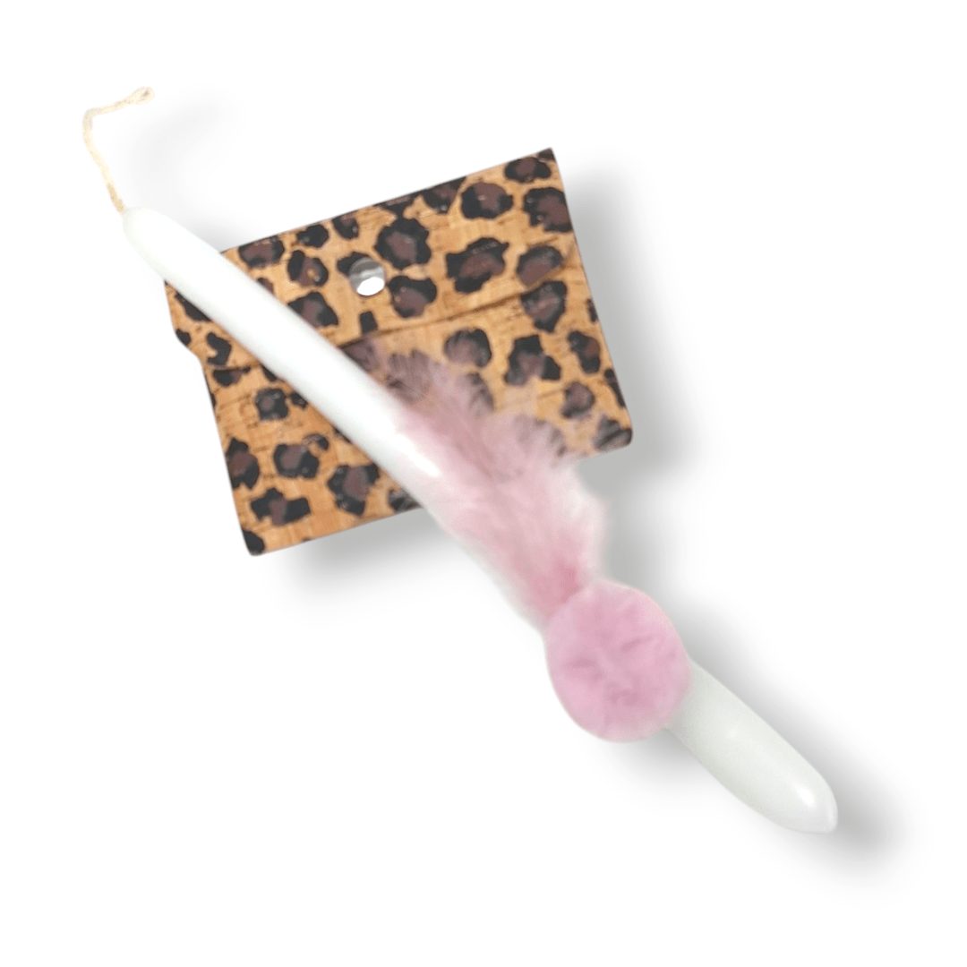 - Λευκό κερί διακοσμημένο με πούπουλο και μπάλα από τούλι.