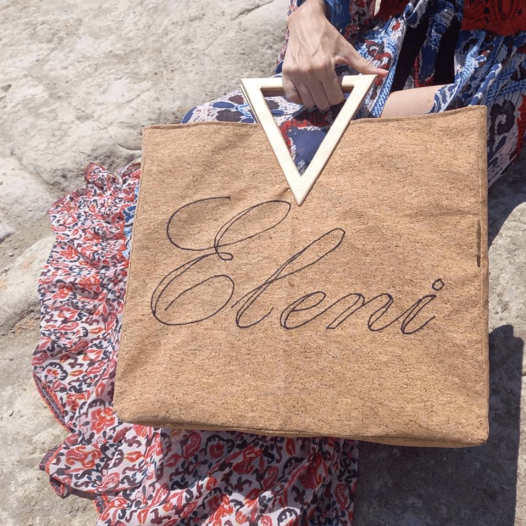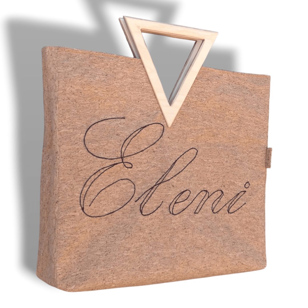 Είναι κατασκευασμένη από υψηλής ποιότητας υλικά με προσεγμένο σχέδιο που την κάνει να ξεχωρίζει. Έχει ευρύχωρο εσωτερικό με τσέπη που κλείνει με φερμουάρ και επιπλέον ανοιχτή τσέπη. Ο φυσικός φελλός είναι εξαιρετικά μαλακό υλικό και η ξύλινη λαβή έχει βελούδινο άγγιγμα.
