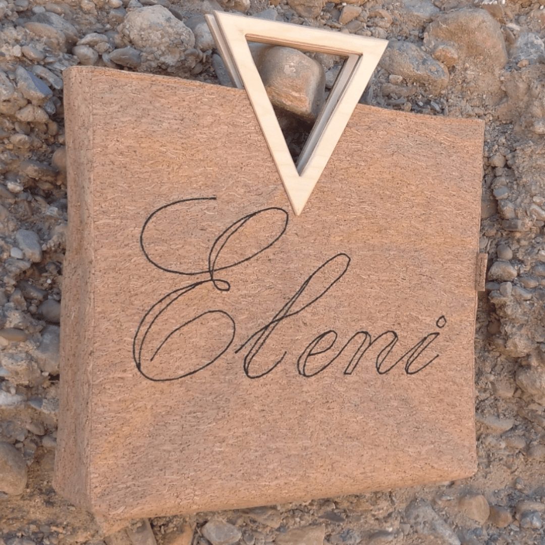 - Ξύλινη χειροποίητη λαβή σε σχήμα τριγώνου.