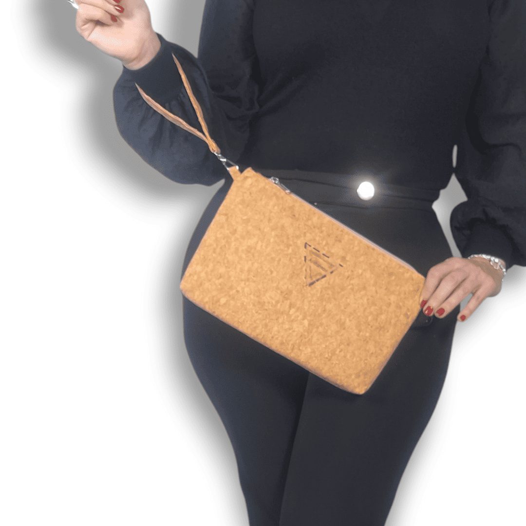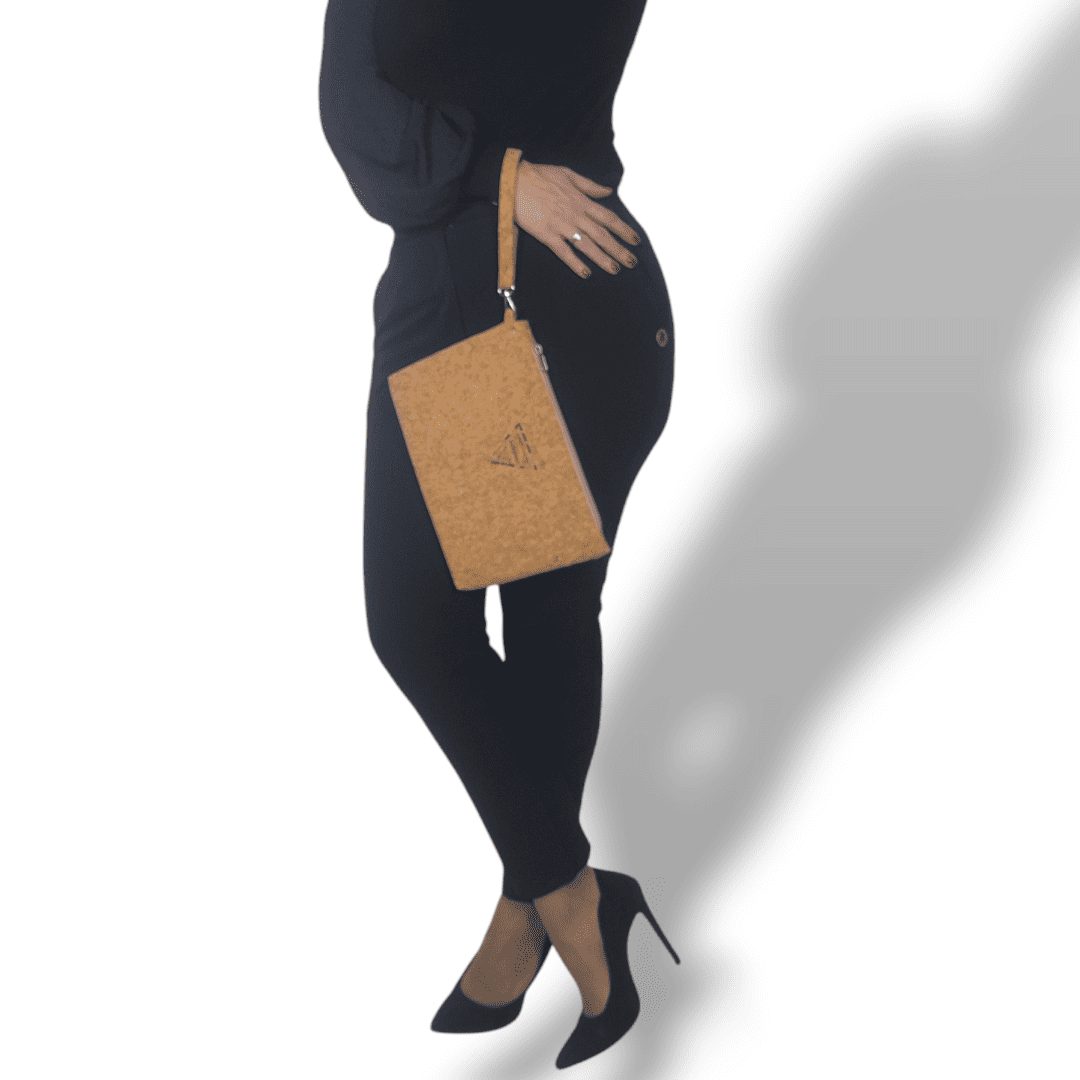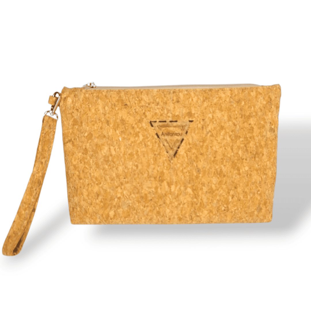 Χειροποίητο, τσαντάκι χειρός. Από ύφασμα φυσικού φελλού. Ευρύχωρο και πρακτικό, ιδανικό για όλα τη μέρα. Κλείσιμο με φερμουάρ και λουράκι καρπού. Ευρύχωρο εσωτερικό, με τσέπη που κλείνει με φερμουάρ και επιπλέον ανοιχτή τσέπη.