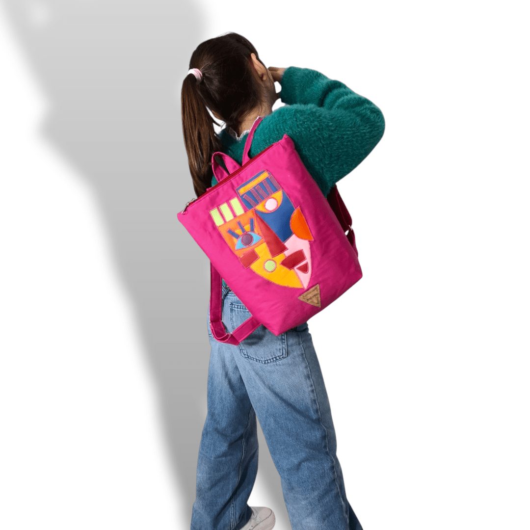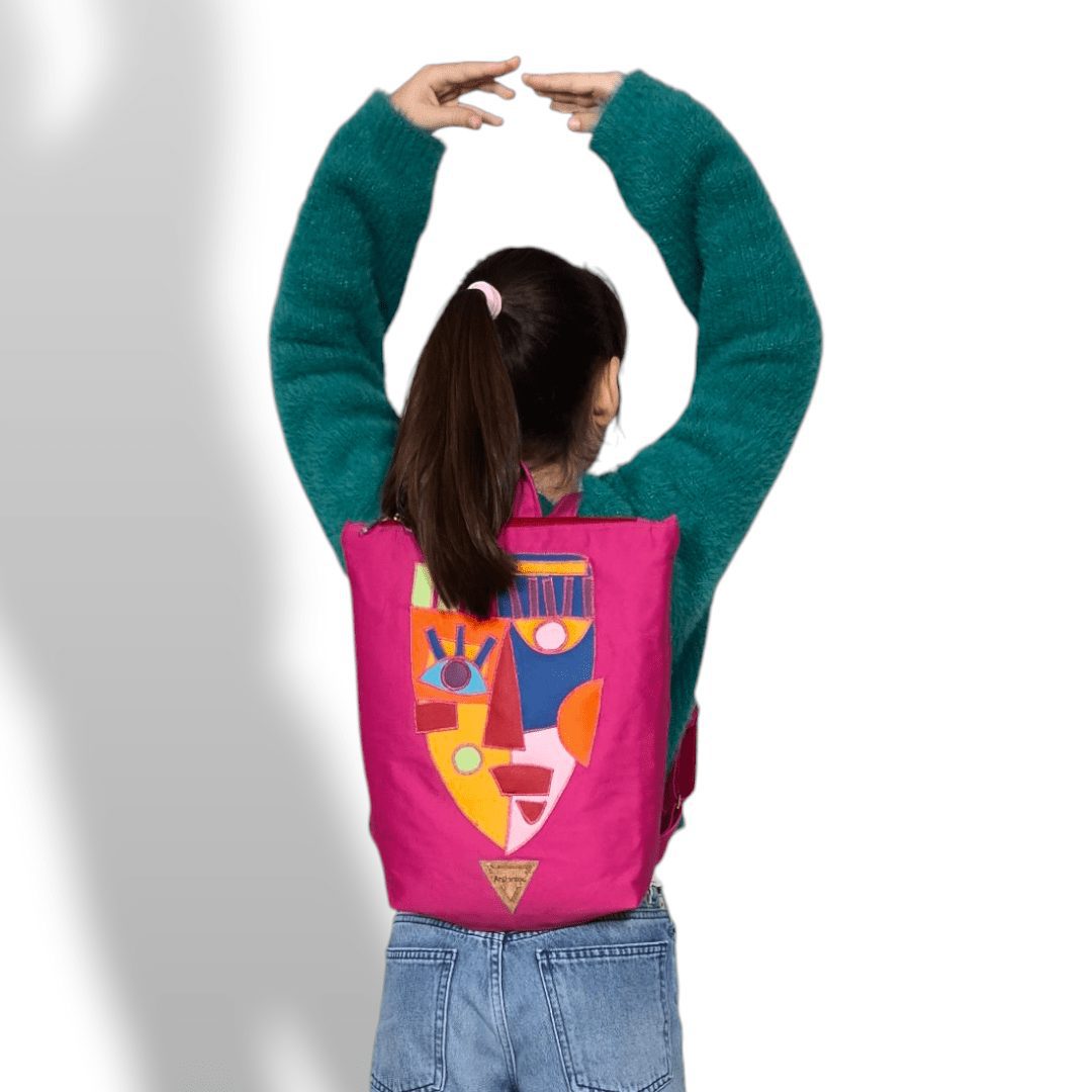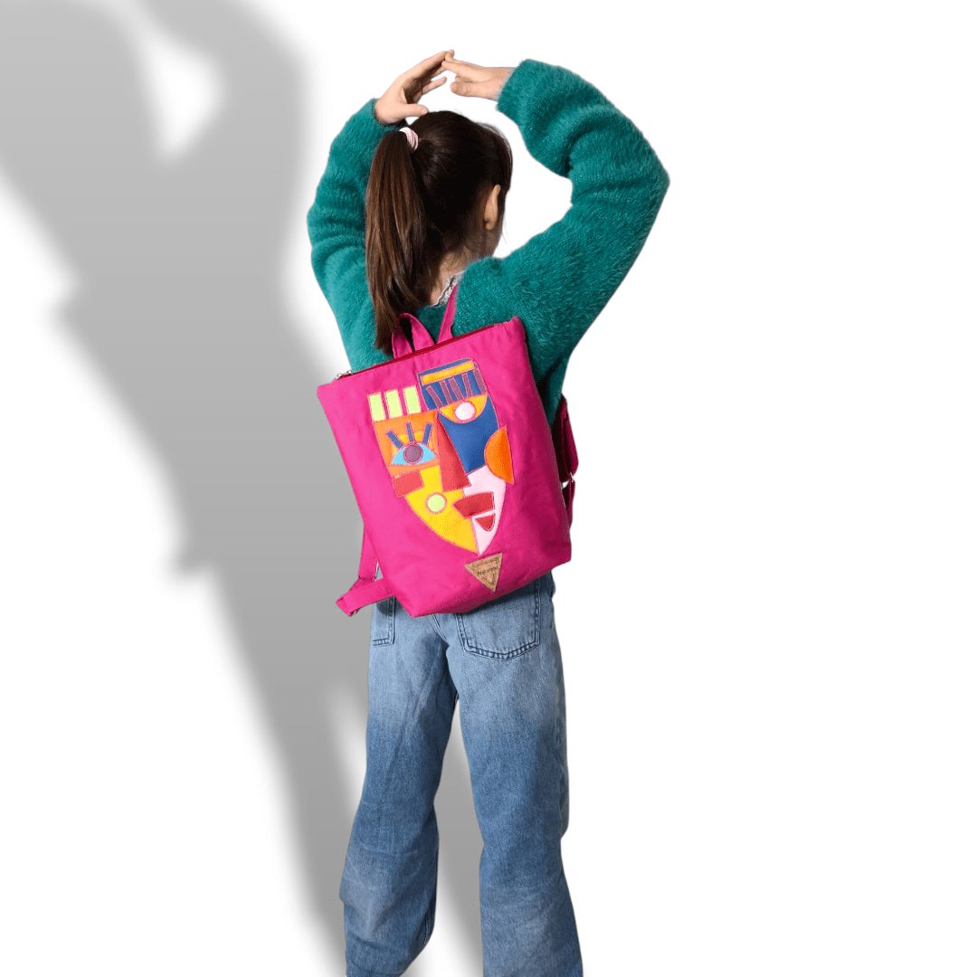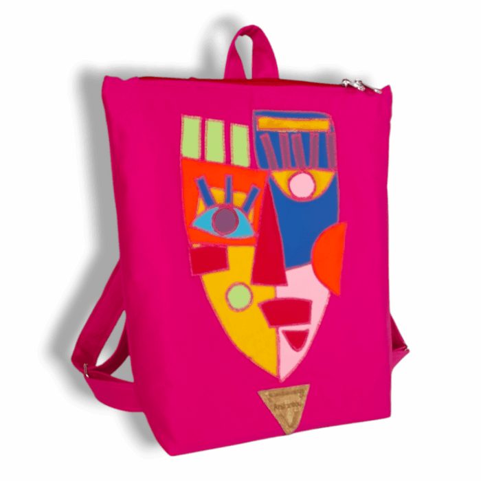 Χειροποίητο, παιδικό σακίδιο πλάτης. Με ξεχωριστό σχέδιο, εμπνευσμένο από την τέχνη του Πικάσο. Από βαμβακερό ύφασμα. Διαθέτει ρυθμιζόμενους ιμάντες από βαμβακερό ύφασμα. Ευρύχωρο εσωτερικό, με τσέπη που κλείνει με φερμουάρ και επιπλέον ανοιχτή τσέπη.