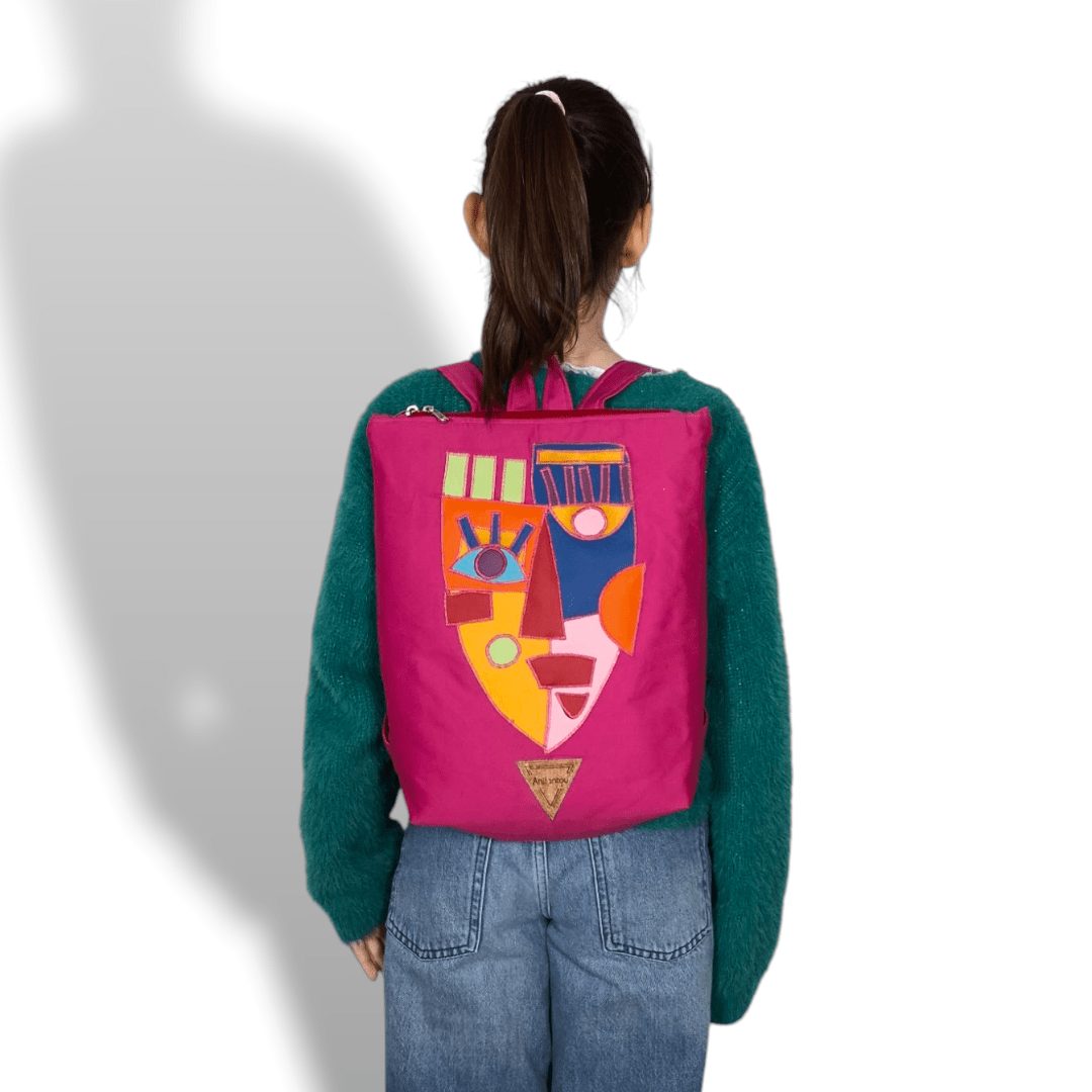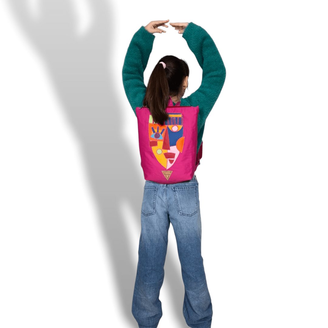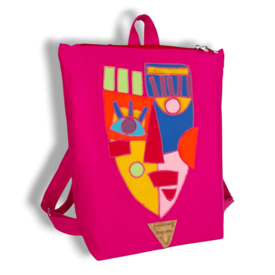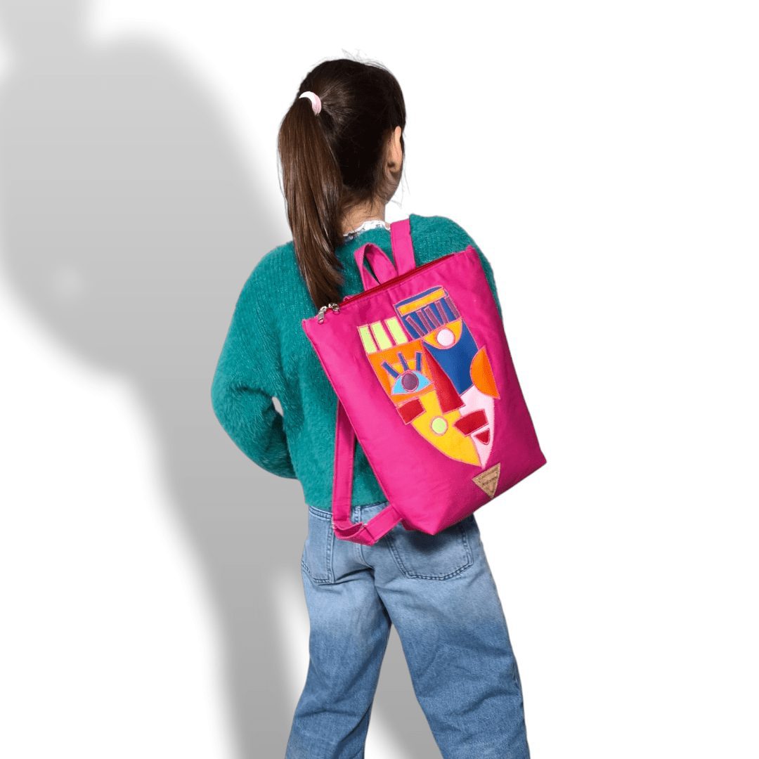Χειροποίητο, παιδικό σακίδιο πλάτης. Με ξεχωριστό σχέδιο, εμπνευσμένο από την τέχνη του Πικάσο. Από βαμβακερό ύφασμα. Διαθέτει ρυθμιζόμενους ιμάντες από βαμβακερό ύφασμα. Ευρύχωρο εσωτερικό, με τσέπη που κλείνει με φερμουάρ και επιπλέον ανοιχτή τσέπη.